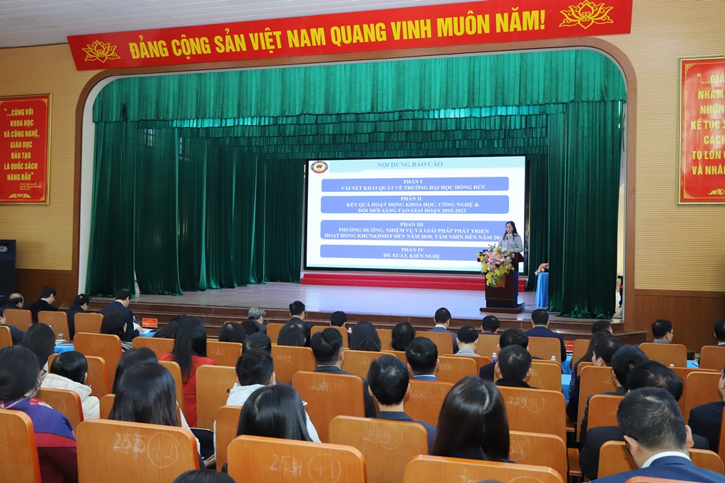 Phát biểu kết luận buổi làm việc, Phó Chủ tịch UBND tỉnh Lê Đức Giang biểu dương, ghi nhận, đánh giá cao kết quả đạt được của trường Đại học Hồng Đức trong năm qua trên các mặt hoạt động. Đồng thời nhấn mạnh: Để trường Đại học Hồng Đức trở thành trung tâm nghiên cứu đổi mới sáng tạo của tỉnh, của khu vực, trong nước và quốc tế, trong thời gian tới nhiệm vụ đặt ra là hết sức nặng nề. Hiện thực hóa mục tiêu này phụ thuộc vào nhiều yếu tố, trong đó cần có sự nỗ lực, cố gắng rất lớn từ phía nhà trường.