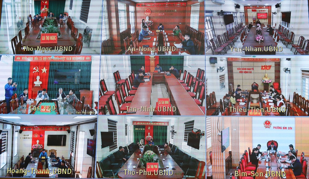 | Hội nghị được kết nối trực tuyến đến toàn bộ 166 điểm cầu các xã, phường trong tỉnh. |