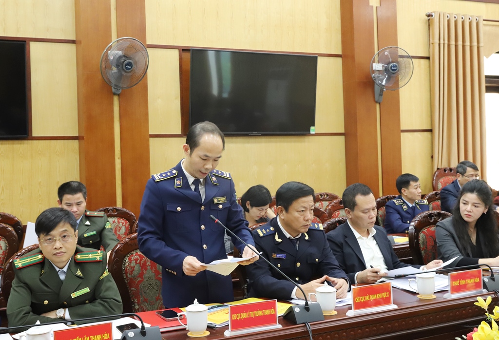 | Đại diện lãnh đạo Chi cục Quản lý thị trường Thanh Hóa báo cáo tại hội nghị. |