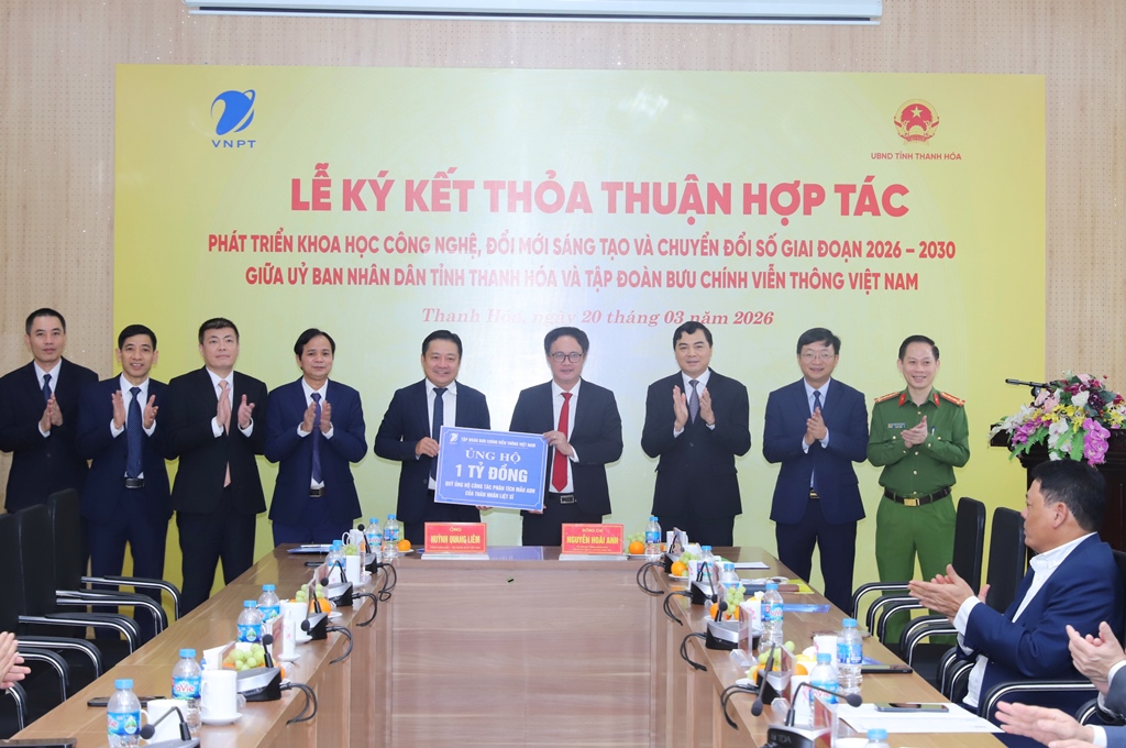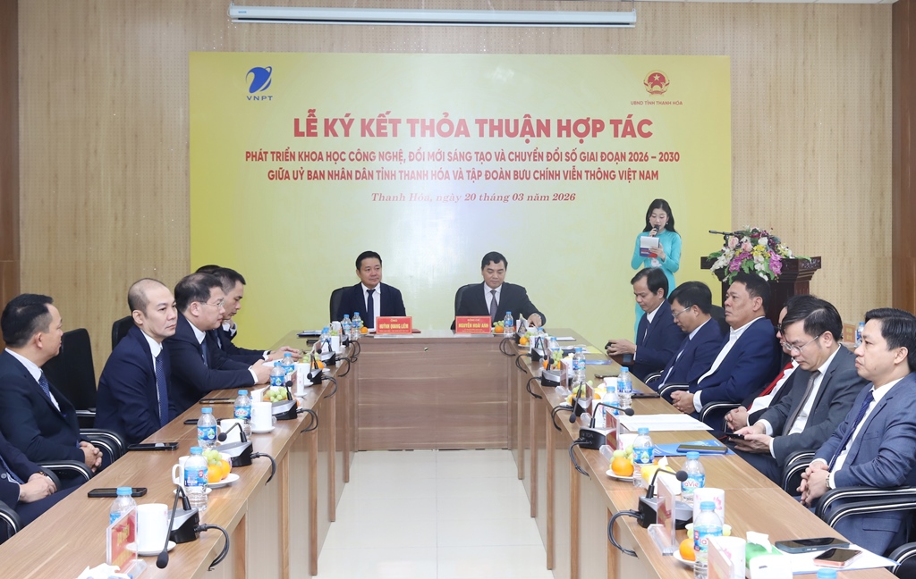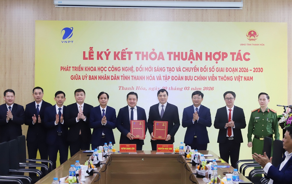 Tại buổi lễ, dưới sự chứng kiến của lãnh đạo các ngành chức năng tỉnh Thanh Hóa và Tập đoàn VNPT; Chủ tịch UBND tỉnh Nguyễn Hoài Anh và Tổng Giám đốc Tập đoàn VNPT Huỳnh Quang Liêm đã thực hiện nghi thức ký kết Thỏa thuận hợp tác phát triển khoa học công nghệ, đổi mới sáng tạo và chuyển đổi số giai đoạn 2026-2030 giữa UBND tỉnh với Tập đoàn VNPT.
