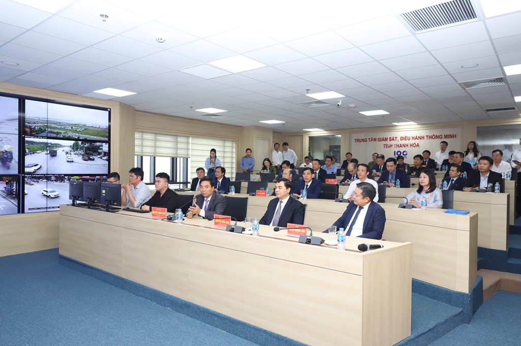 Tiếp đó các đồng chí lãnh đạo tỉnh và các đại biểu đã thực hiện nghi thức ấn nút chính thức vận hành Trung tâm IOC Thanh Hóa và đi kiểm tra, nghe báo cáo tình hình hoạt động của Trung tâm IOC Thanh Hóa.