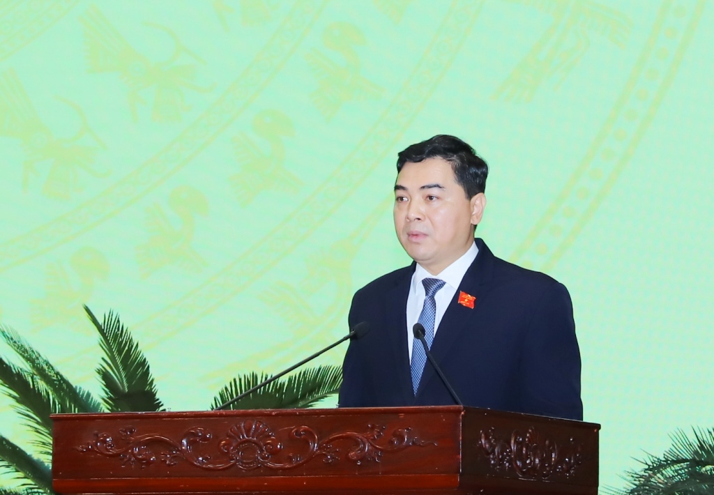 | Phó Chủ tịch HĐND tỉnh Nguyễn Quang Hải phát biểu tại kỳ họp. |