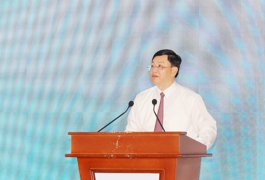 | Phó Chủ tịch Thường trực UBND tỉnh Mai Xuân Liêm phát biểu tại buổi lễ. |