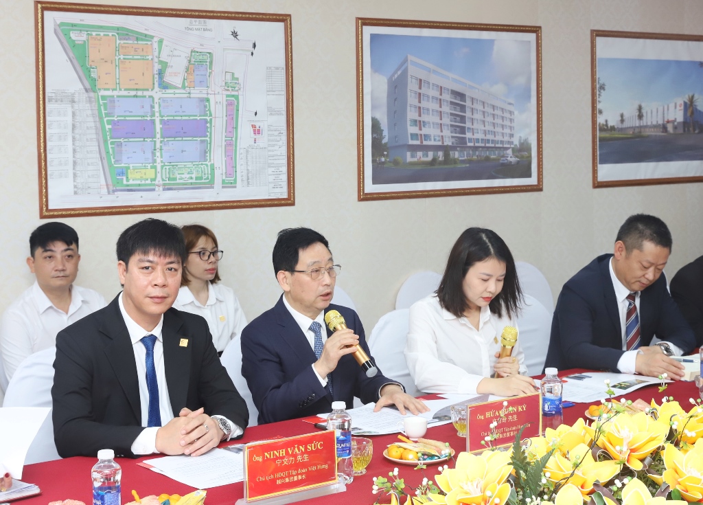 | Ông Hứa Quân Kỳ, Chủ tịch Tập đoàn gốm sứ Hoa Liên – Hồ Nam, Trung Quốc báo cáo tiến độ tình hình thực hiện dự án. |
