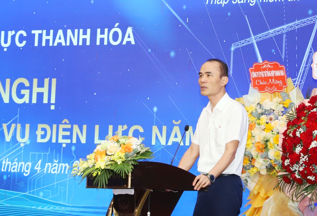 | Đồng chí Hoàng Hải, Giám đốc Công ty Điện lực Thanh Hóa phát biểu khai mạc hội nghị. |