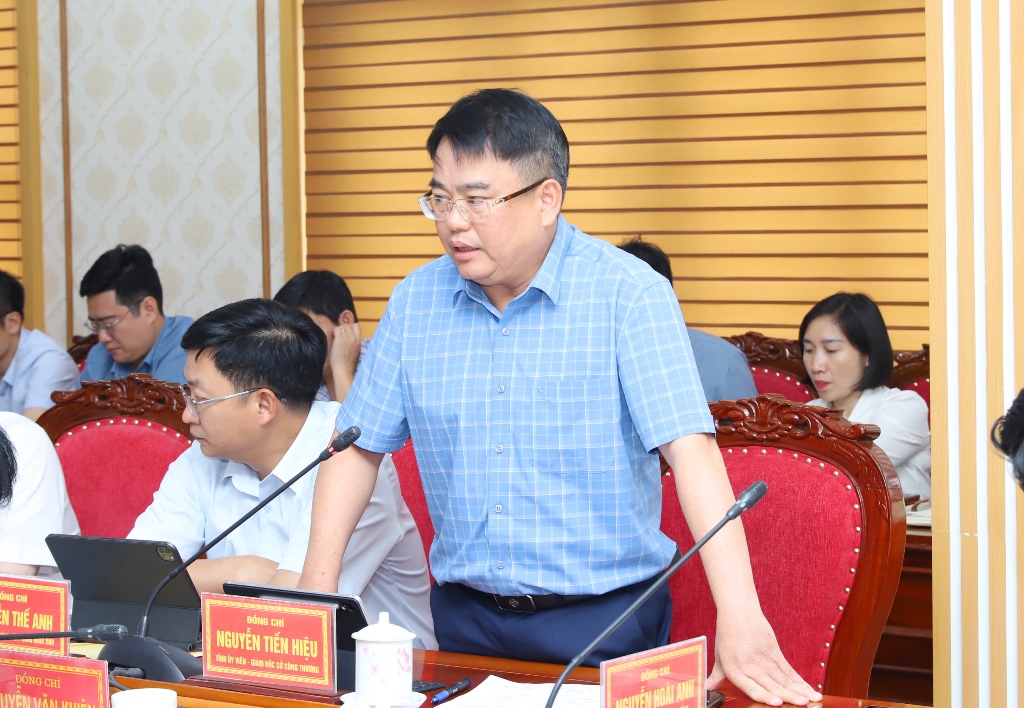 Đại diện lãnh đạo các sở, ngành phát biểu ý kiến tại buổi làm việc.