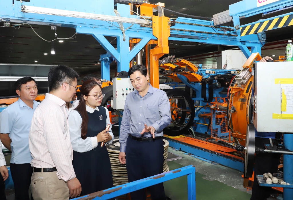 Chủ tịch UBND tỉnh và đoàn công tác đến thăm Nhà máy Lốp ô tô Radial tại Khu công nghiệp Bỉm Sơn.
