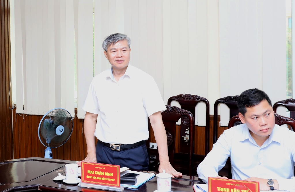 | Giám đốc Sở Tư pháp Mai Xuân Bình phát biểu tại buổi làm việc. |